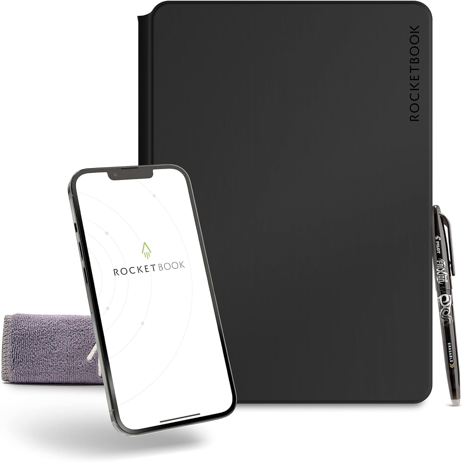 Includes one scratch-resistant Hard Cover, Lined/Dot Grid Page Pack with 20 sheets (40 pages front and back), one Pilot FriXion pen, and one Microfiber Cloth