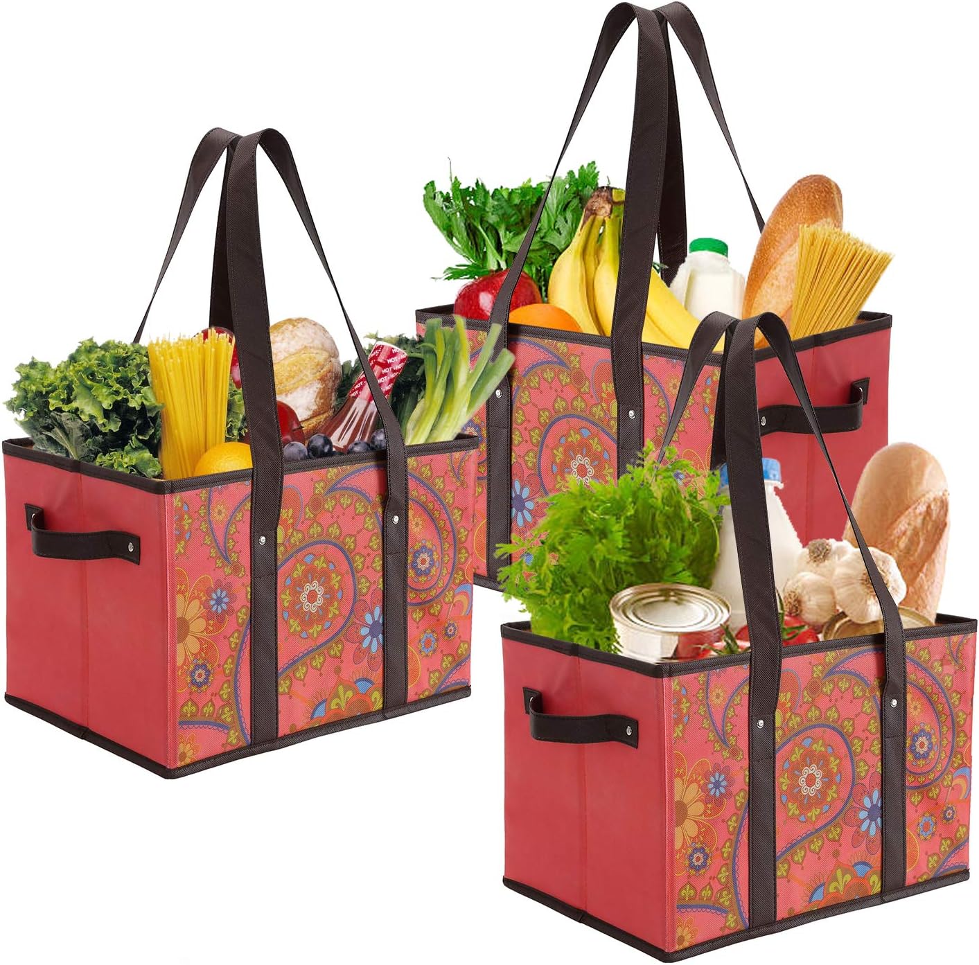 Reusable Grocery Bags Set Durable Heavy Duty Tote Bag Collapsible Grocery Shopping Box Bag with Reinforced Bottom, Pack of 3